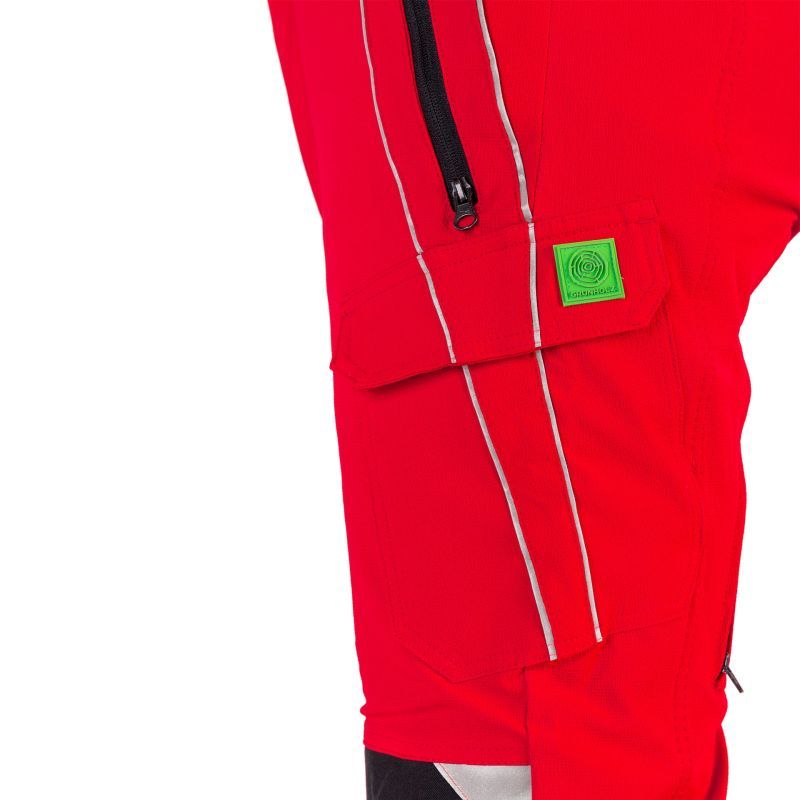 Die Hose ist in den Farbvarianten Rot und Anthrazit erhältlich und mit wasserabweisendem Material sowie reflektierenden Paspeln und Einsätzen ausgestattet, um bei jedem Wetter und in jeder Situation sichtbar und trocken zu bleiben.