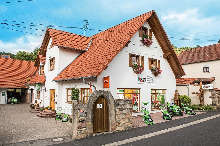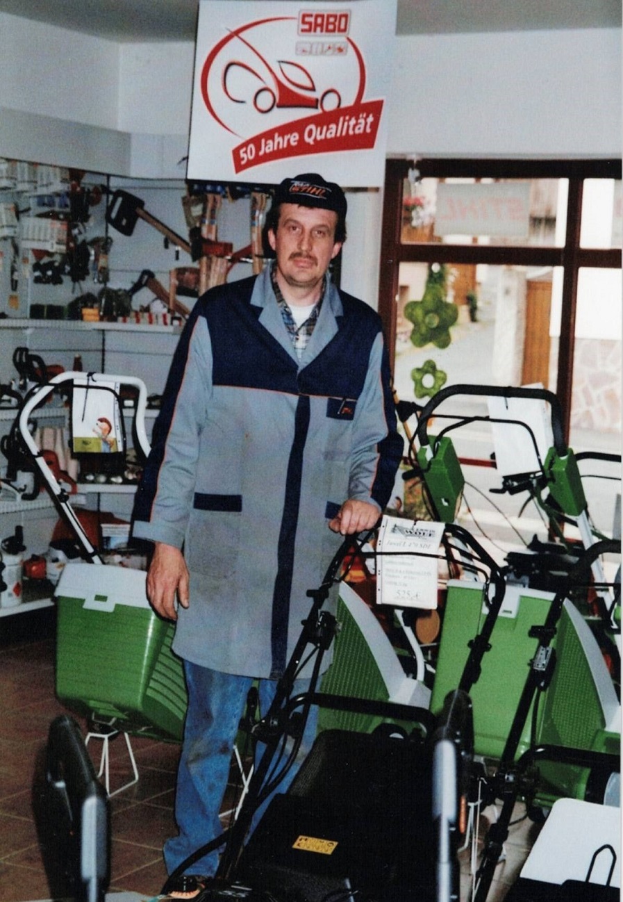 1987 - Erwin Wolf begann im Nebenerwerb seine Firma in der Dorfstraße 11 in Burghausen aufzubauen, er verkaufte und reparierte Geräte der Marke STIHL und anderer Marken